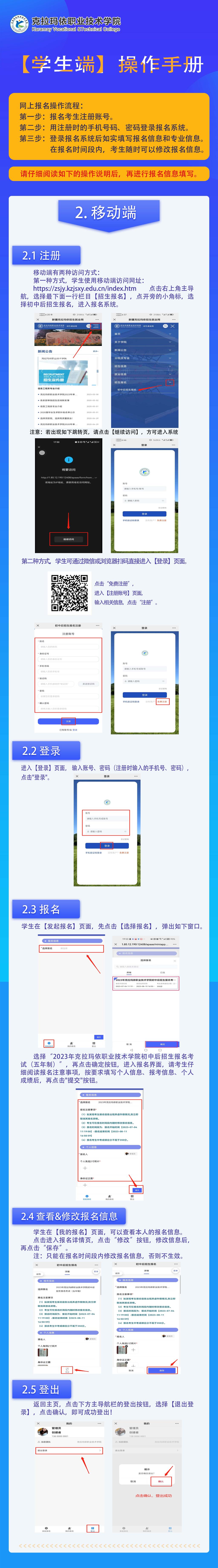 通过学院招生就业网站或手机客户端进行报名(具体报名流程见附件《【学生端】操作手册》)。每个考生只能选择2个专业志愿,并勾选是否调剂。