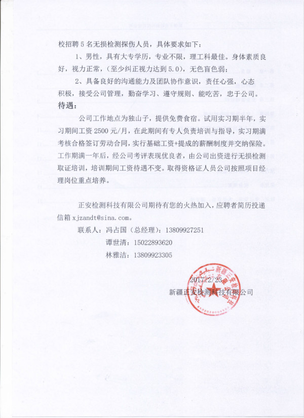 正安检测科技有限公司招聘信息