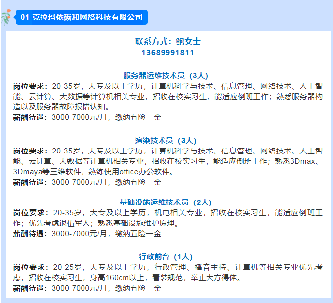 克拉玛依碳和网络科技有限公司招聘信息