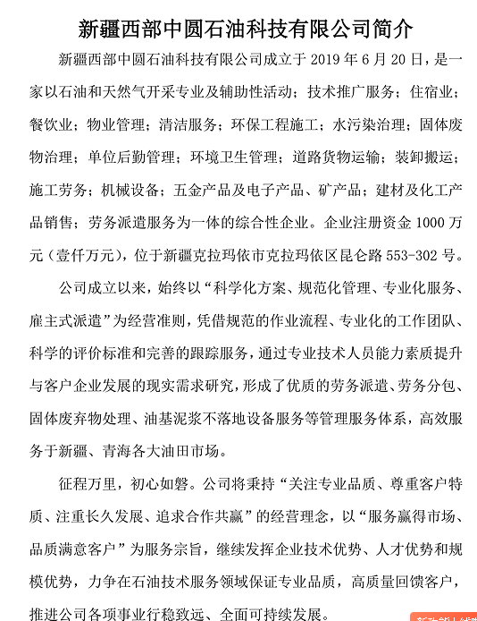 新疆西部中圆石油科技有限公司简介