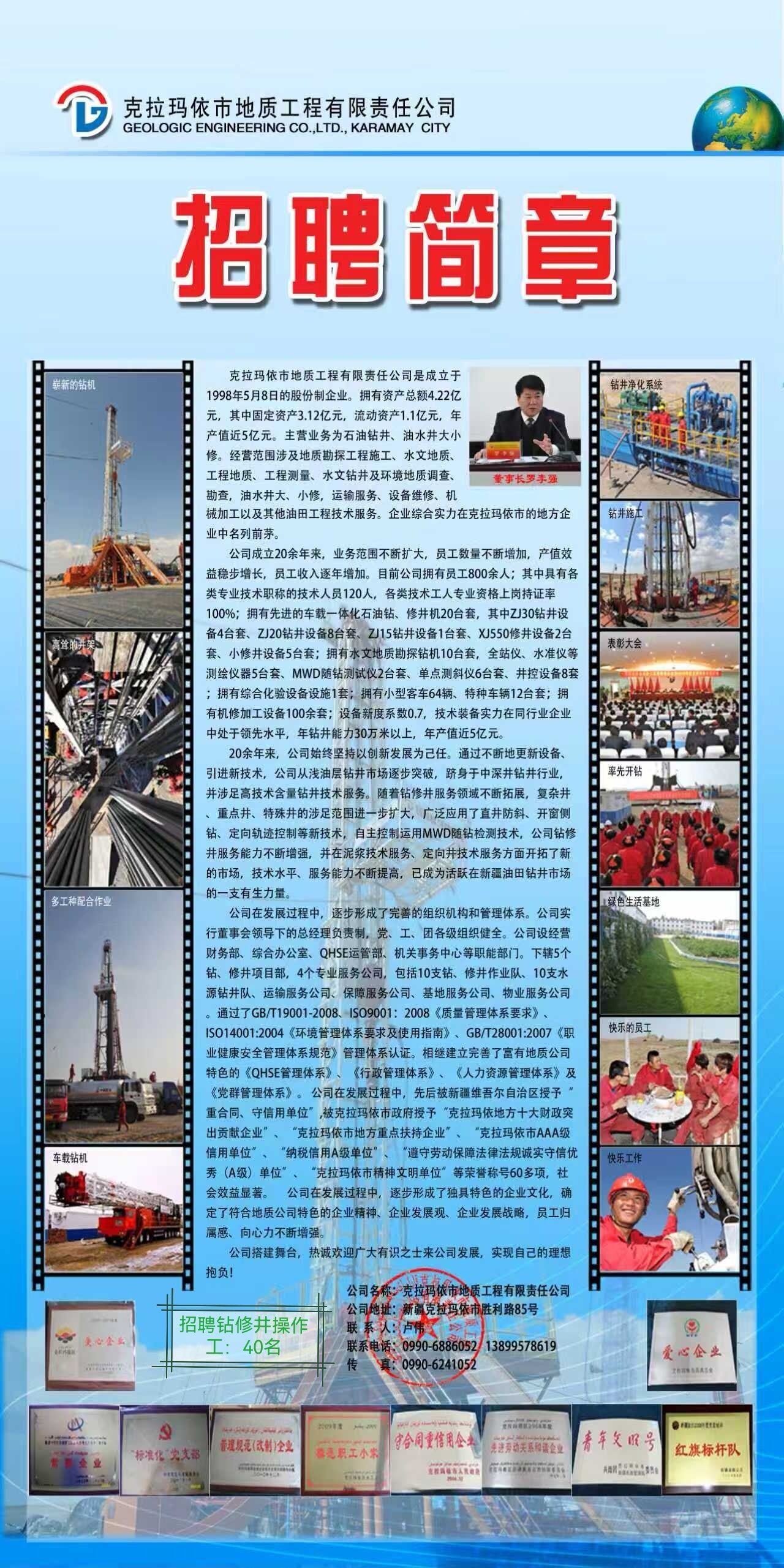 克拉玛依市地质工程有限责任公司招聘简章