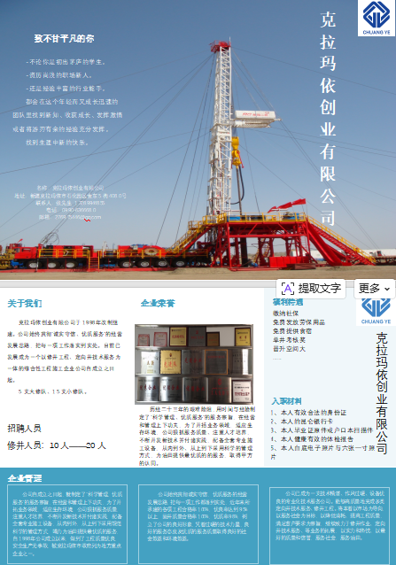 克拉玛依市创业有限公司招聘简章