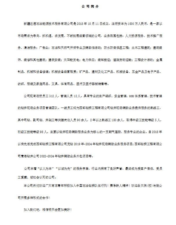 新疆帝陛艾斯钻头工具有限公司招聘简章
