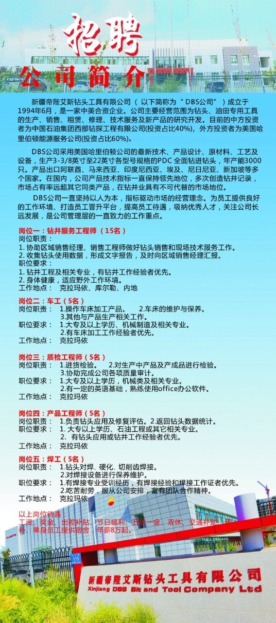 新疆帝陛艾斯钻头工具有限公司招聘简章