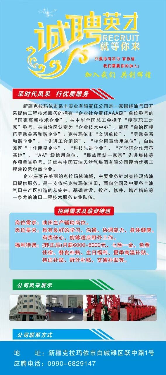 新疆克拉玛依市采丰实业有限责任公司招聘简章