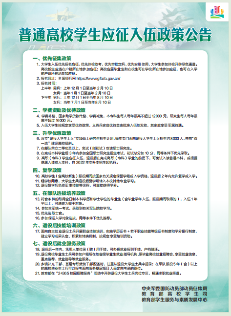 普通高校学生应征入伍政策公告