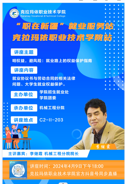 就业活动预告:克拉玛依职业技术学院人社就业服务站新学期首场讲座来了!